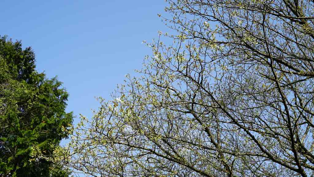 | ▼3月15日(月)の月光桜です。 蕾が膨らみました。今年の開花はもうすぐです! | |